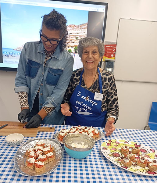- Griekse kookdemonstratie door Sancha Shuurs (“Yiayia kookt”) en Evangelia Nikolidaki (de Moeder van Jorgos).